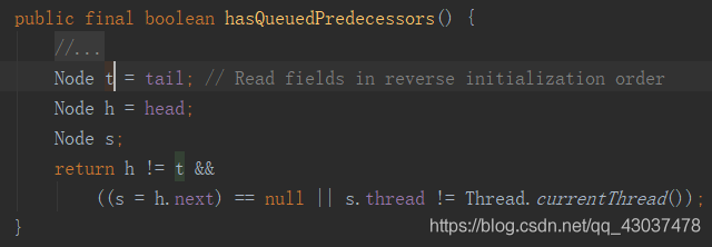 进入hasQueuedPredecessors()方法