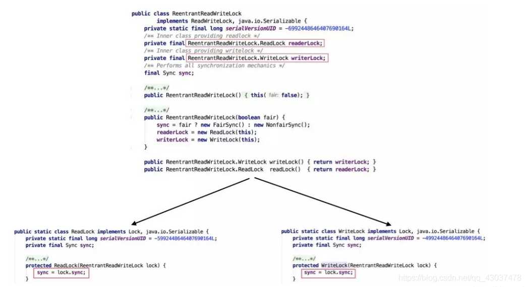 下图为ReentrantReadWriteLock的部分源码: