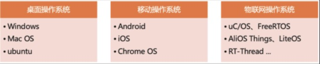 如果把常见的操作系统按照其应用场景进行分类,可主要分为桌面操作系统、移动操作系统和物联网操作系统,各个领域主要操作系如下图所示。