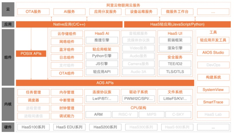 - 2021年5月份,AliOS Things正式发布V3.3版本,在这个版本中真正做到了基于弹性内核的积木式开发方案,并且支持Python和JavaScript的轻应用开发新模式。