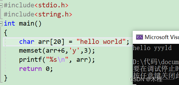 memset(arr+6,'y',3);//arr+6表示从'w'这个字符开始