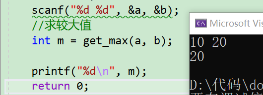 //函数(get_max)相当于一个工厂,输入的a,b相当于原材料,输出的产品是a,b中的最大值。