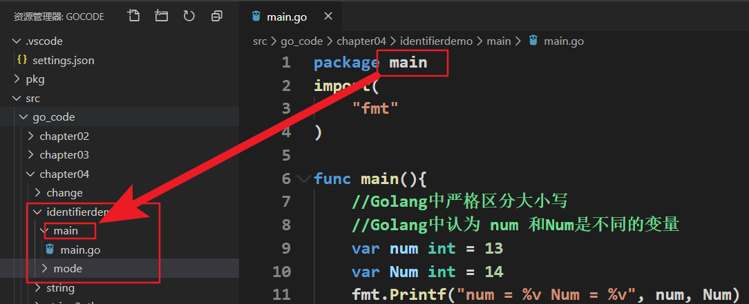 - 说明:在golang中,num和Num是两个不同的变量