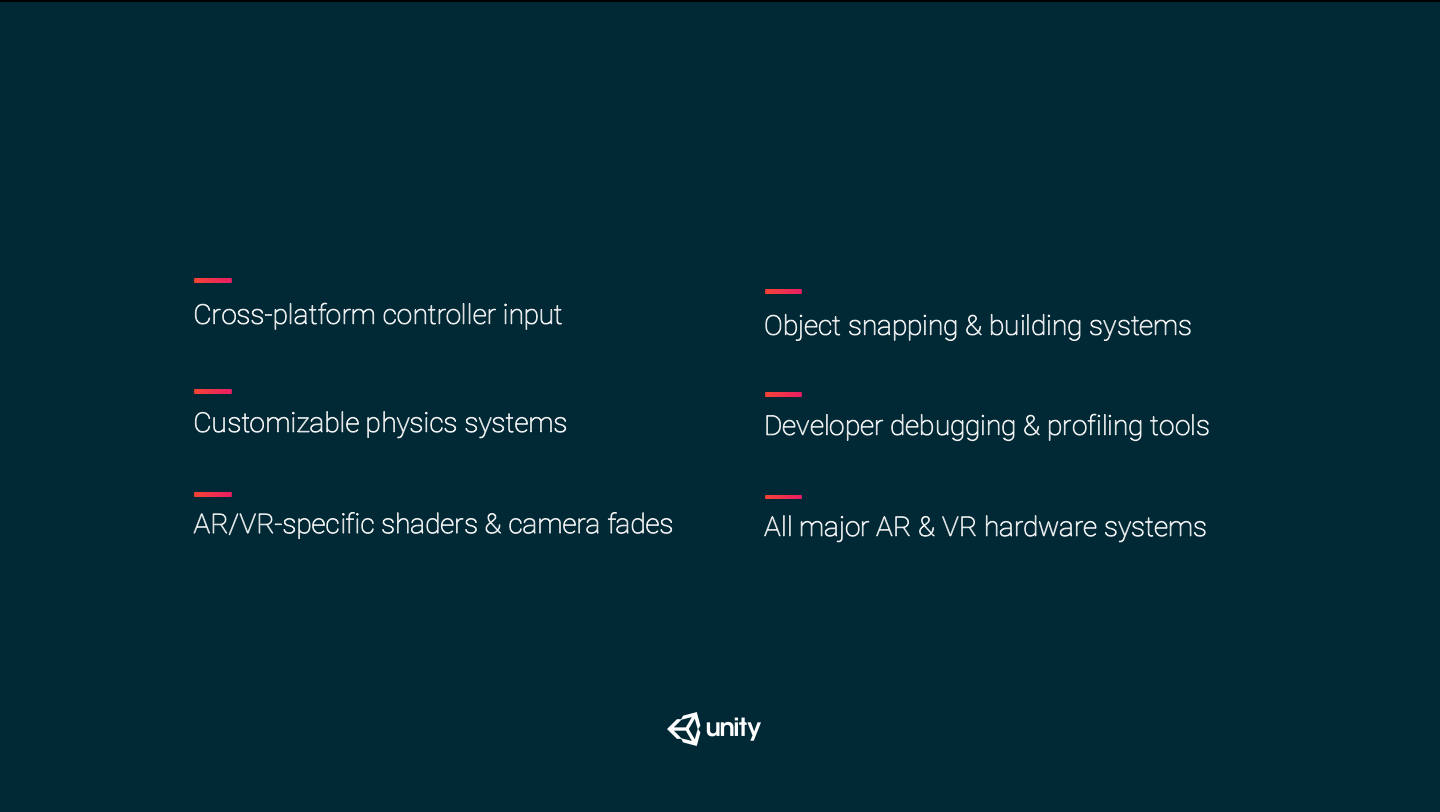 The Unity Labs team is also working with partners like Oculus, HTC Vive, PlayStation VR, and Daydream on a newly announced XR Foundation Toolkit, a framework for XR developers and artists to get up-to-speed as quickly as possible creating immersive experiences. We’ll have more info at our upcoming Vision VR/AR Summit, so stay tuned!