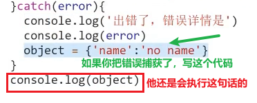 ps: try catch的内心os: 我将这个错误捉住,不能让其他人看到,再偷偷将他们干掉,显示正常的代码