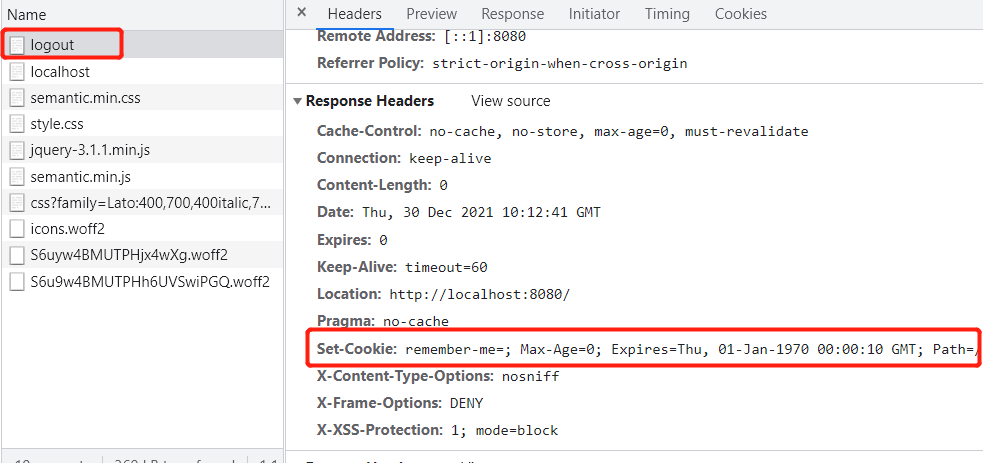 我们点击注销的时候,可以发现,spring security 帮我们自动删除了这个 cookie