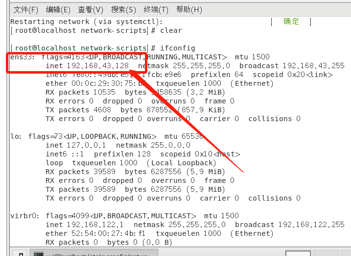 二、到/etc/sysconfig/network-scripts/下修改enp0s3的配置文件ifcfg-ens33。