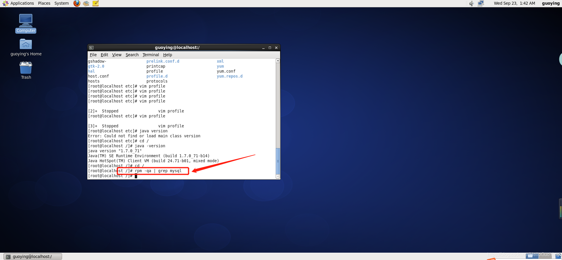 输入 rpm -qa | grep mysql
