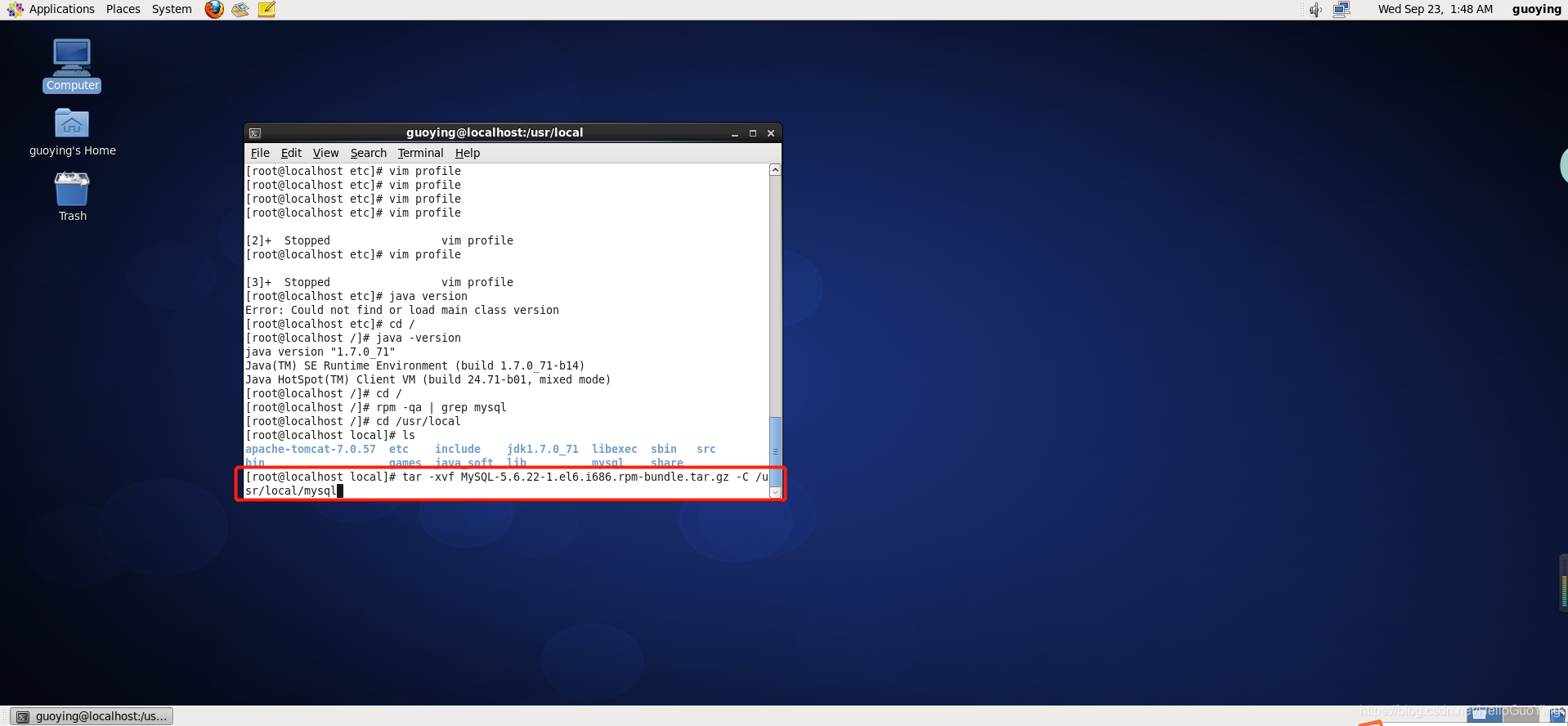 tar -xvf MySQL-5.6.22-1.el6.i686.rpm-bundle.tar.gz -C /usr/local/mysql