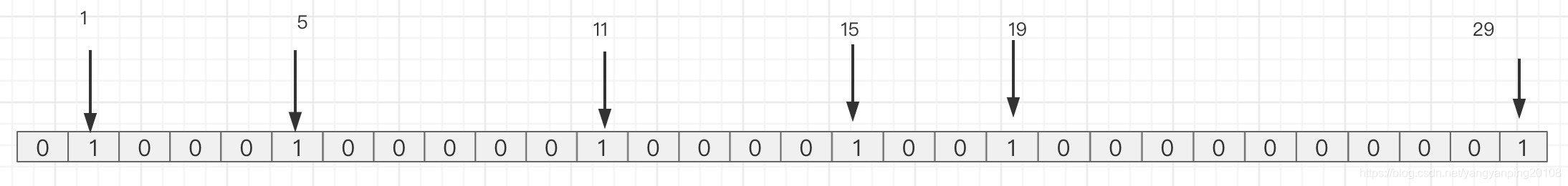 如果此时有一个userId = 30的用户访问了网站,那么BitMap 结构变成图: