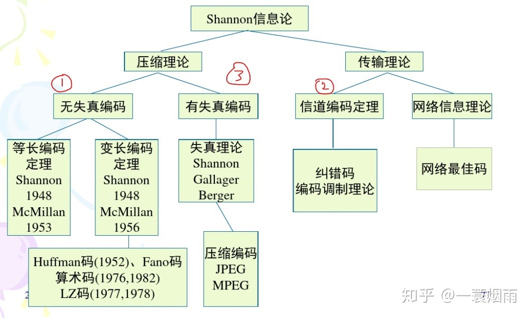 总而言之香农的三大定理就是在给出界限和范围,最大的信道容量,无失真时最小的编码长度,和存在失真时能够正确恢复信息的界限。这里先给出信息论的一些基础知识,具体的编码相关的知识我将放在信息论的专题里去为大家讲解。