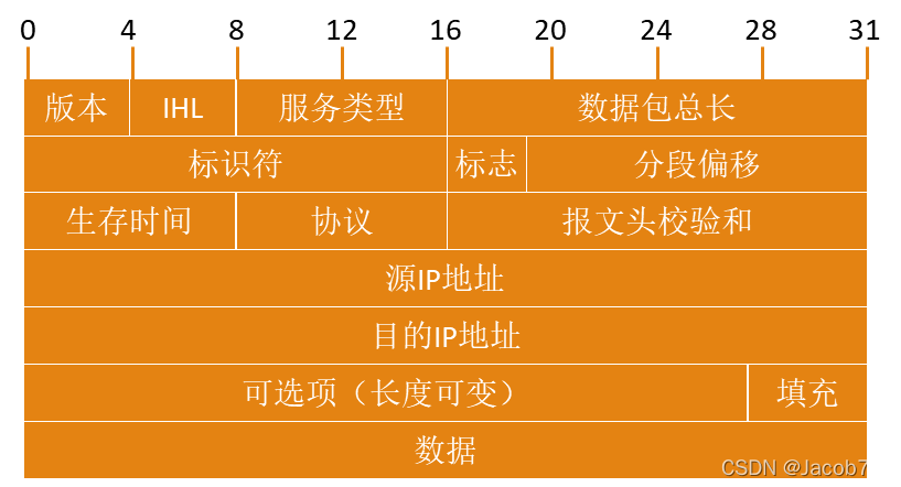 - 可选项(Options):长度可变,很少使用,常用的选项有源路由选项、时间戳选项等