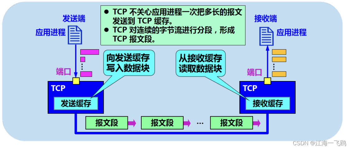 - TCP不关心应用进程一次把多长的报文发送到TCP的缓存中
