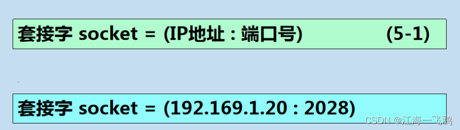 - 端口号拼接到(contatenated with)IP地址即构成了套接字