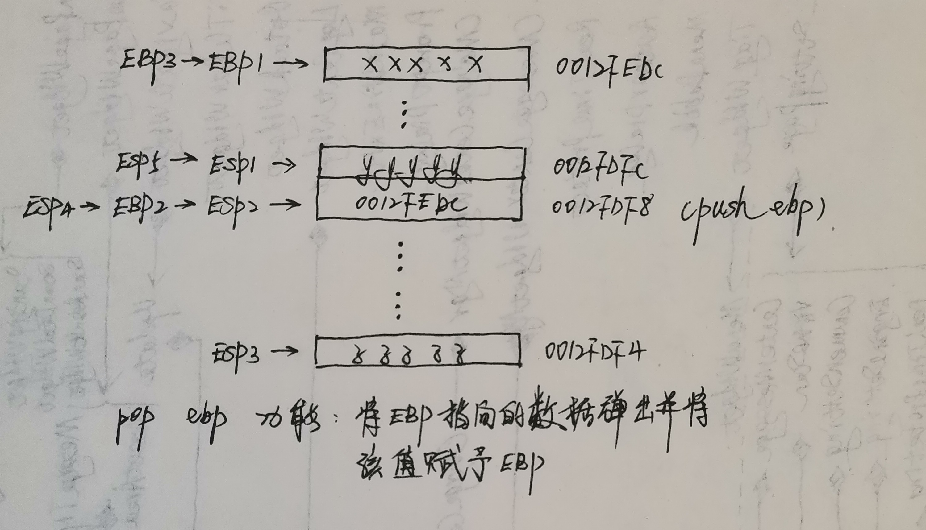 EBP 和 ESP 后面的序号是两个寄存器各自更新的次序。