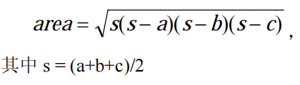 area=sqrt(s*(s-a)*(s-b)*(s-c));