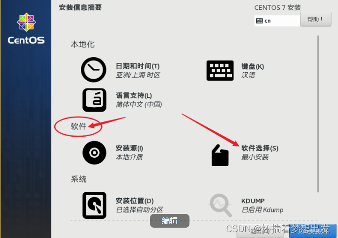 8、【软件】中只配置软件选择,安装源系统会自动识别,所以不用管。
