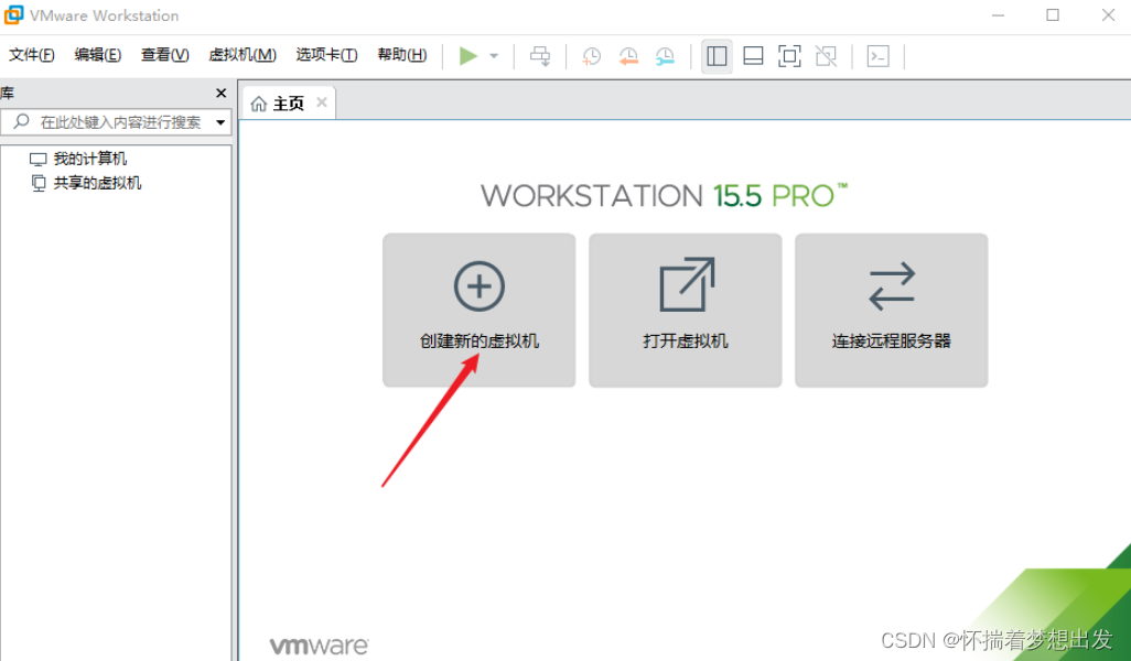 1、打开“VMware Workstation“软件,选择”创建新的虚拟机“。