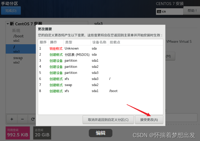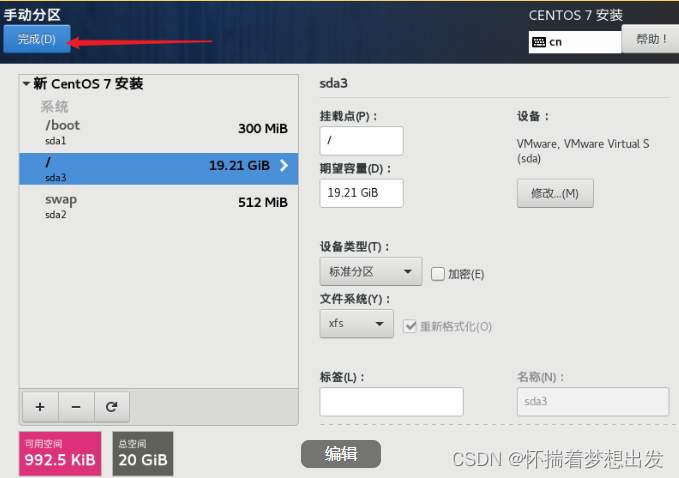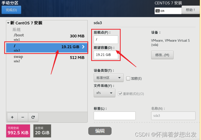 我们分别创建三个分区:/boot区、swap交换分区、根分区/