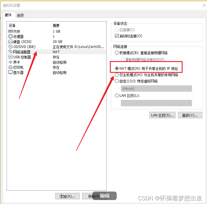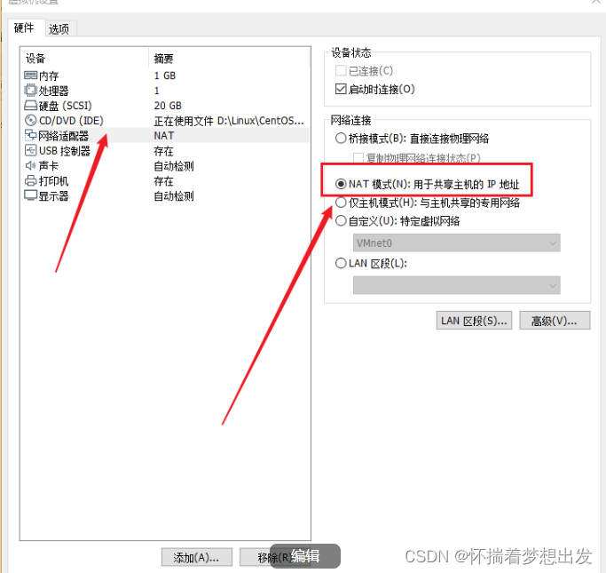 因为前面在设置CentOS7的网络适配器的时候,设置是NAT模式。