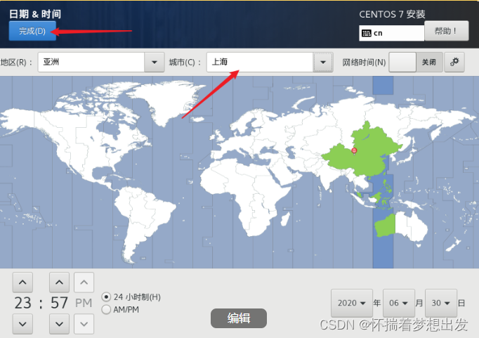7、中国范围内都选择为上海(因为只有上海可选),并选择为24小时制,设置完成后单击完成按钮