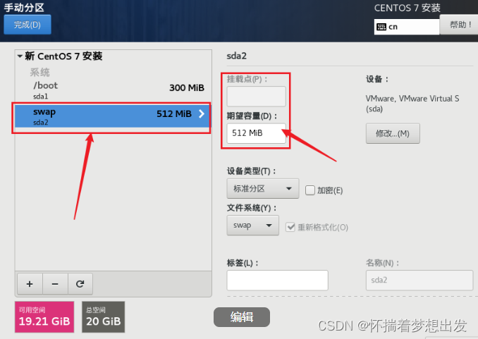14、添加 swap分区,这个是交换分区,一般情况是物理内存的2倍大小,用于物理内存不足时使用,可能造成系统不稳定