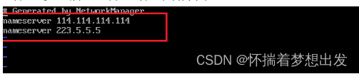----第二种方式是改vi /etc/resolv.conf或者直接echo -e “nameserver 114.114.114.114\nnameserver 223.5.5.5” >>/etc/resolv.conf。(\n是换行的意思)