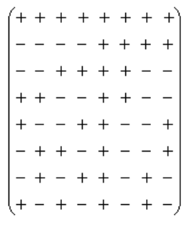 (-1 -1 -1 -1 1 1 1 1)|(-1 -1 -1 -1 1 1 1 1)|(0 0 0 0 0 0 0 0)
