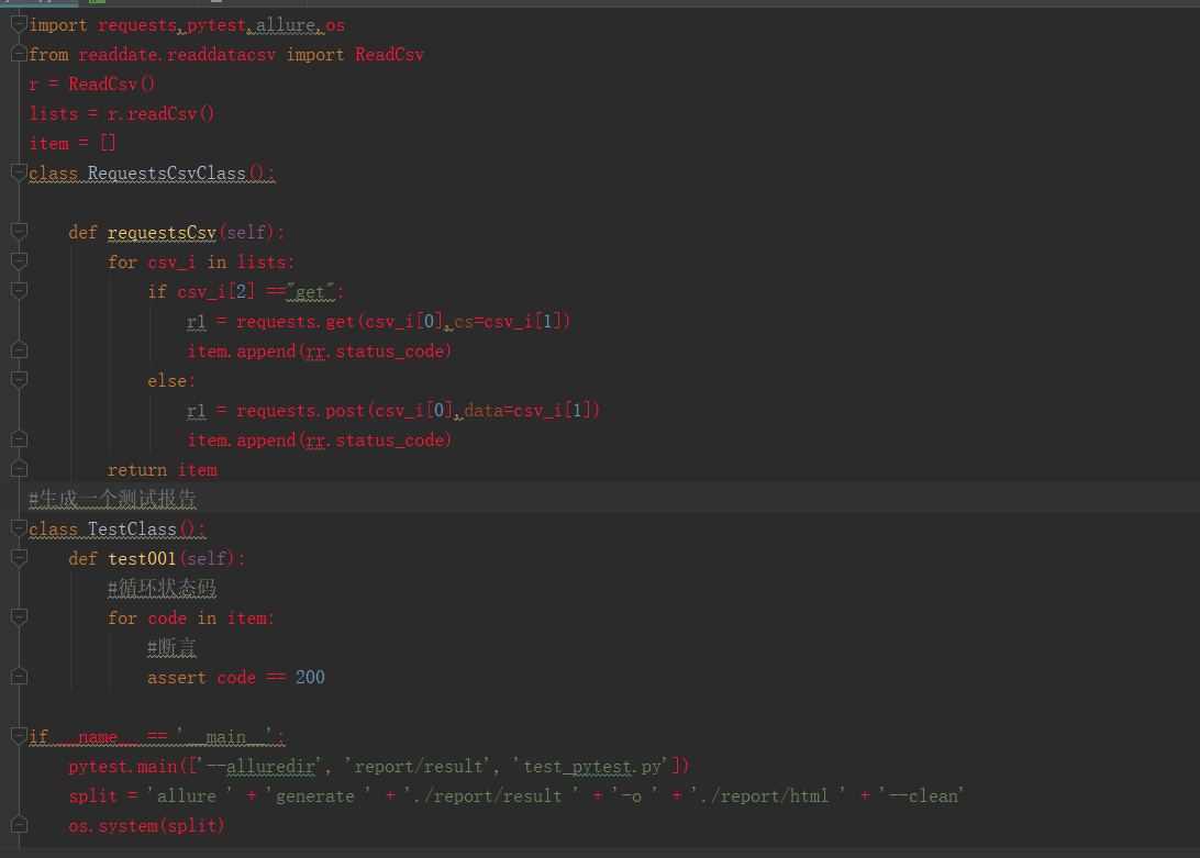 4、导入requests、pytest、allure、os包 定义读取数据方法 定义生成测试报告类