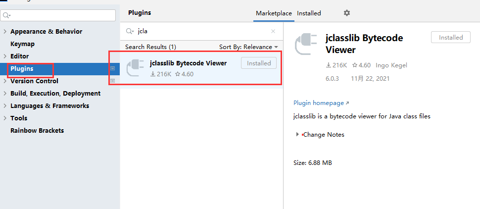 IntelliJ开发工具+Jclass Lib插件,插件直接在setting选项中,搜索安装即可,见下图: