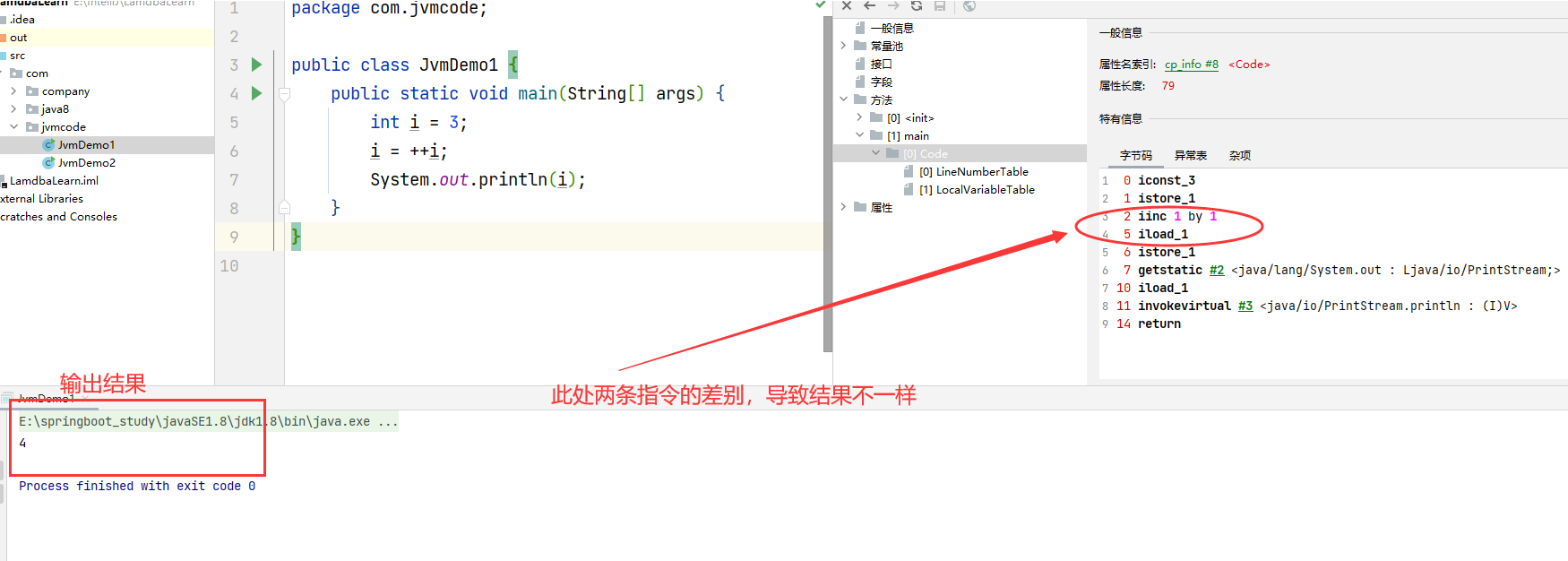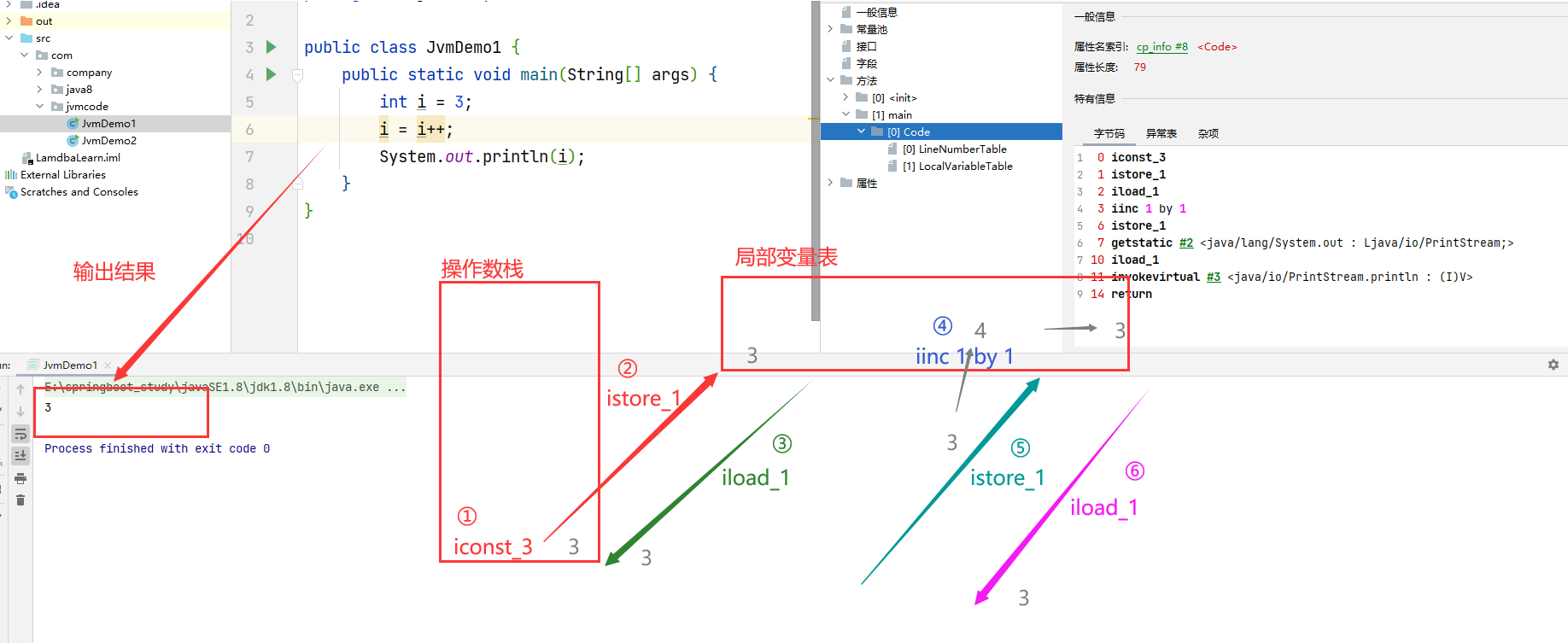 我这里写了两个简单的程序(箭头上的指令含义,见最下面的截图),并且分析如下: