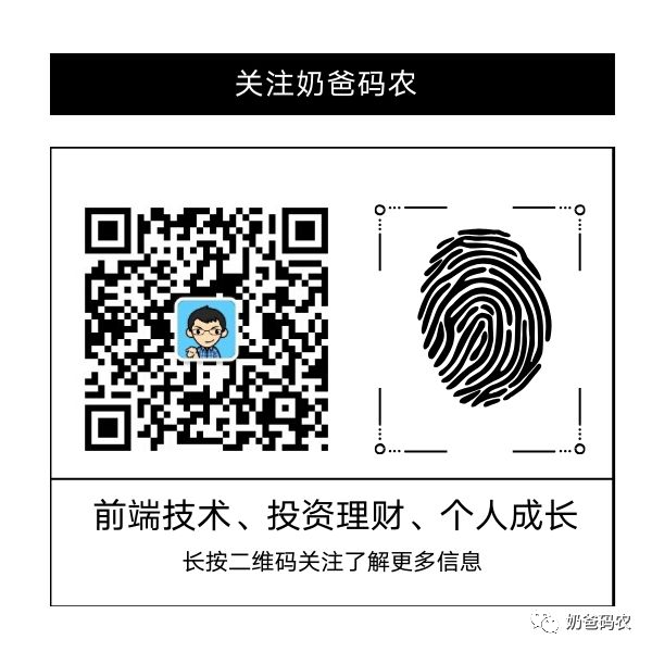 『奶爸码农』从事互联网研发工作10+年,经历IBM、SAP、陆金所、携程等国内外IT公司,目前在美团负责餐饮相关大前端技术团队,定期分享关于大前端技术、投资理财、个人成长的思考与总结。