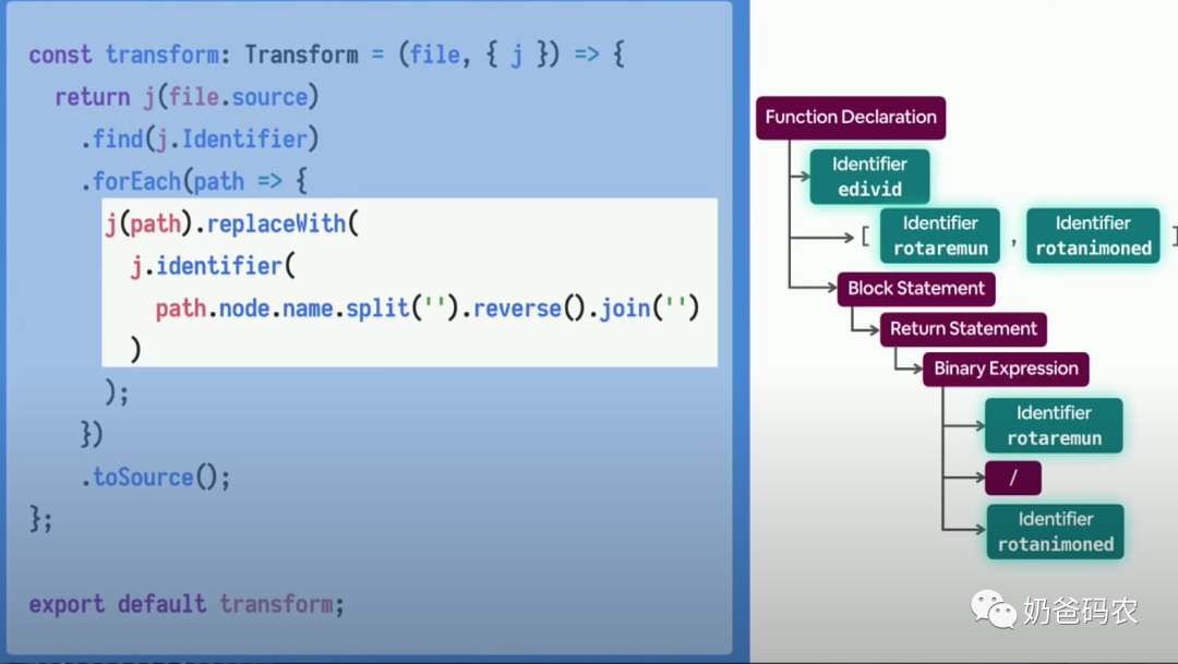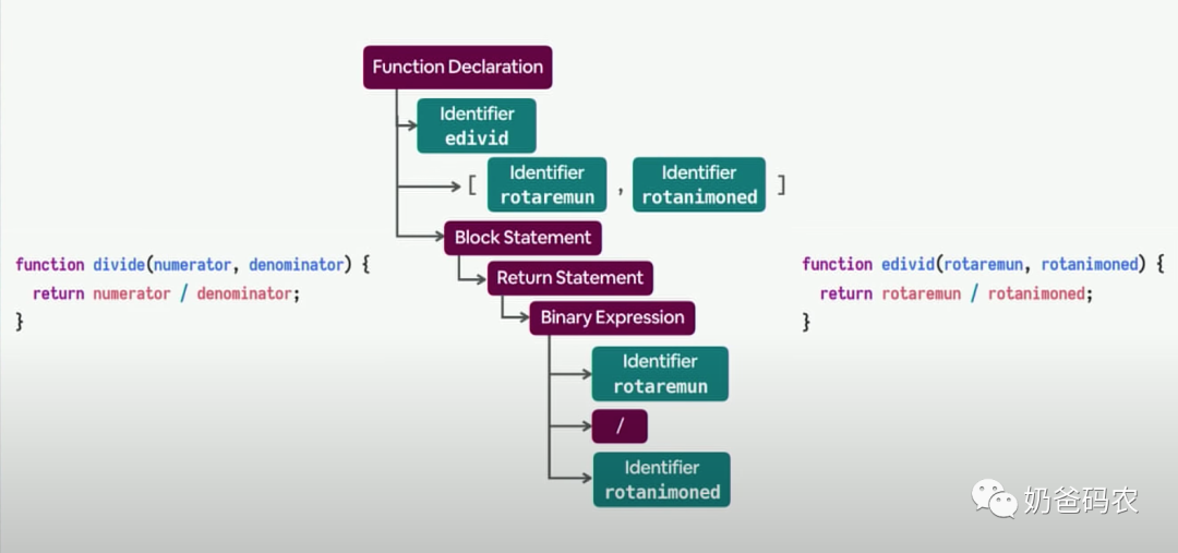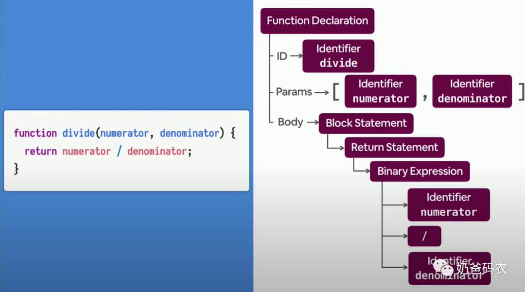 codemod可以理解成一种基于AST对源代码进行修改的方式,如下图所示,一个函数表达可以通过AST解析成一个语法树。