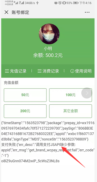 {"err_desc":"调用支付JSAP缺少参数appId","err_msg":"get_brand_wcpay_request:fail","err_code":"-1"}