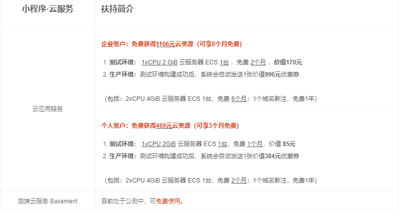 对个人开发者来说,可以得到的扶持为两个月的云服务器加一年的域名。合理的使用。