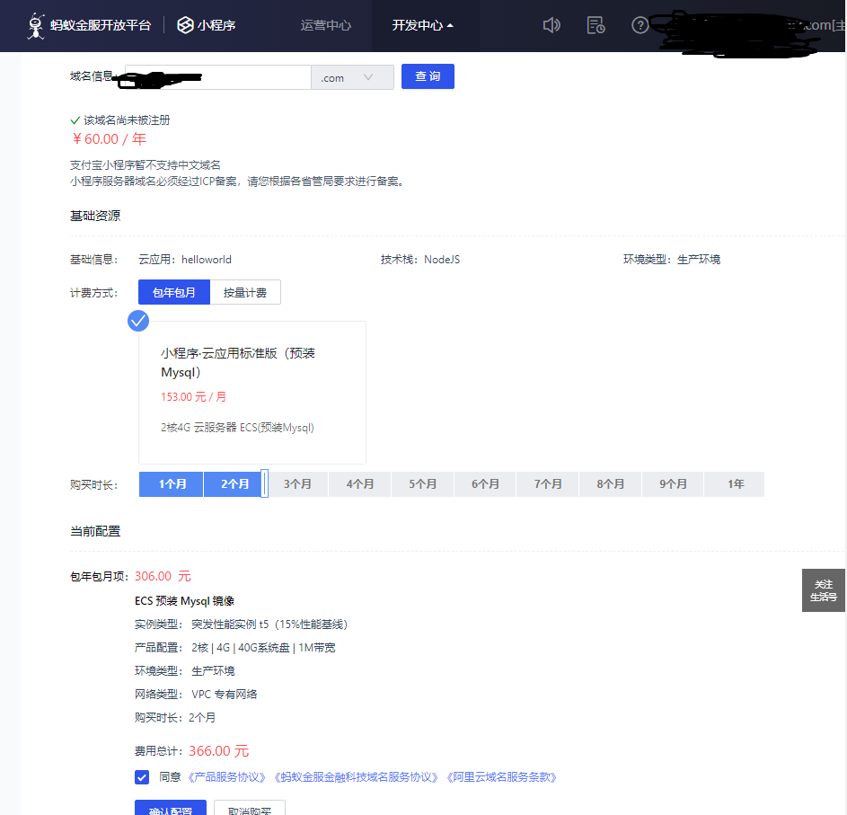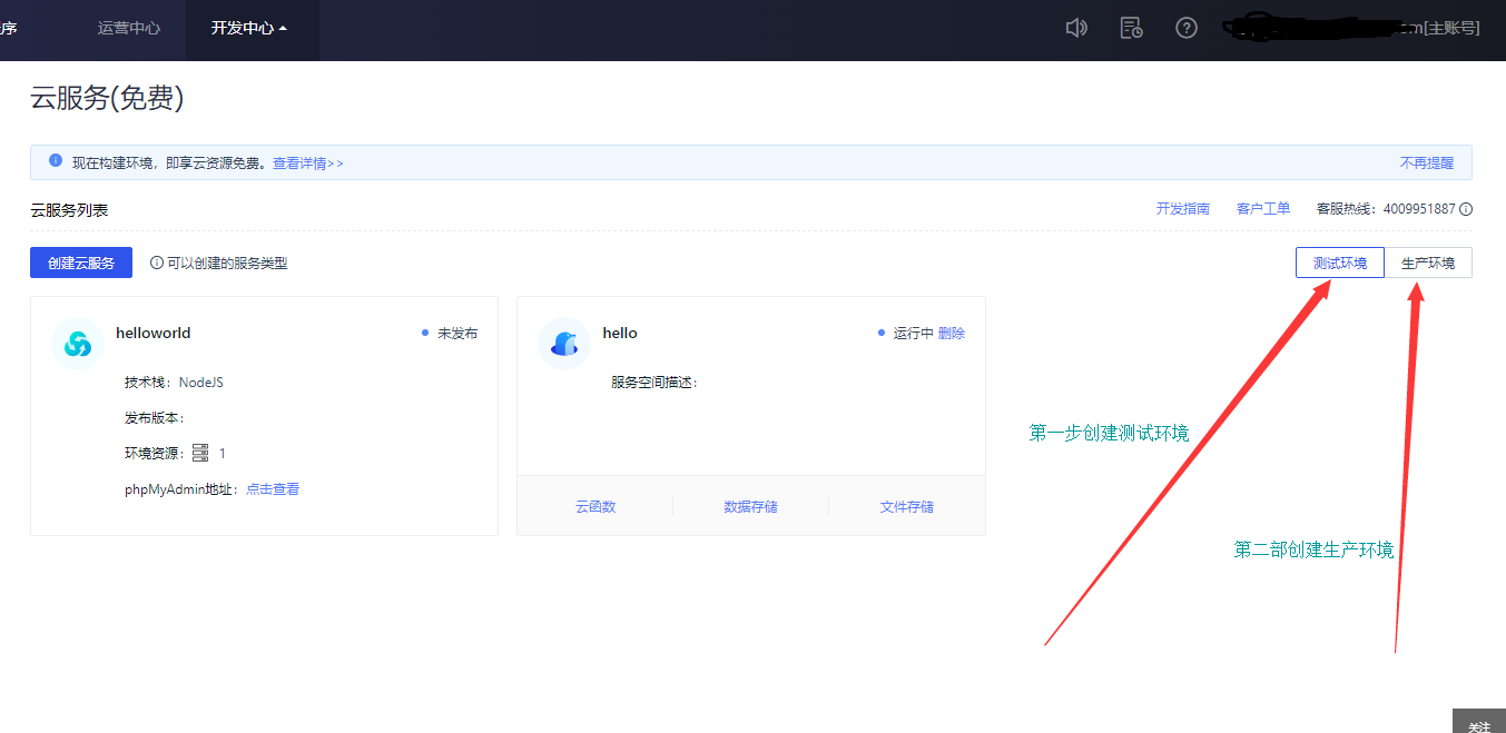 博主是等待了大概一天,就有短信发来了。之后进行第二步操作。创建生产环境。
