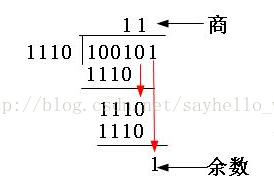 PS: “模2除法”与“算术除法”类似,但它既不向上位借位,也不比较除数和被除数的相同位数值的大小,只要以相同位数进行相除即可。模2加法运算为:1+1=0,0+1=1,0+0=0,无进位,也无借位;模2减法运算为:1-1=0,0-1=1,1-0=1,0-0=0,也无进位,无借位。相当于二进制中的逻辑异或运算。也就是比较后,两者对应位相同则结果为“0”,不同则结果为“1”。如100101除以1110,结果得到商为11,余数为1。