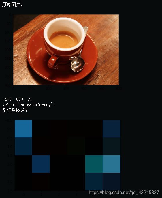 此处,图片采样和量化的代码在循环时语法一样,只是采样需要先声明一个空的数组来存放新的数组;量化直接在原始图片上进行。