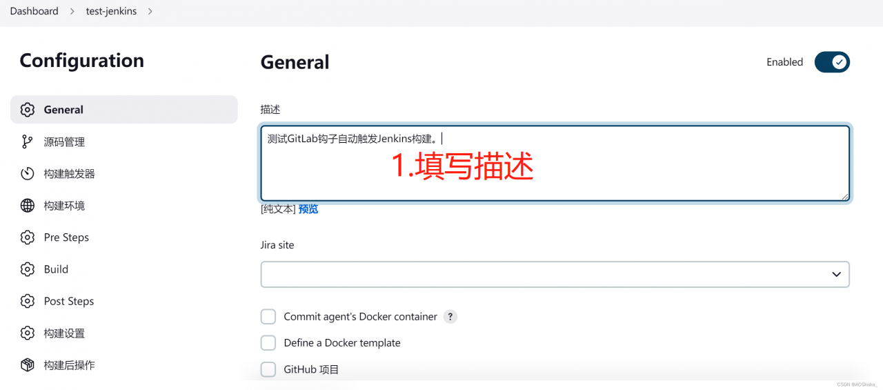 目标: 在GitLab提交代码之后,Jenkins会自动构建。