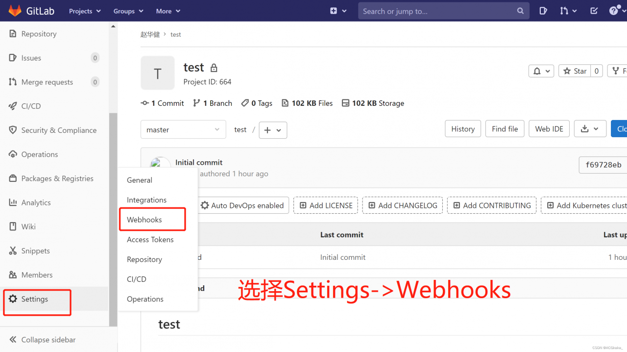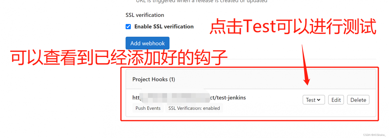 3.4)添加之后可以看到已经添加好的钩子,点击Test可以进行测试
