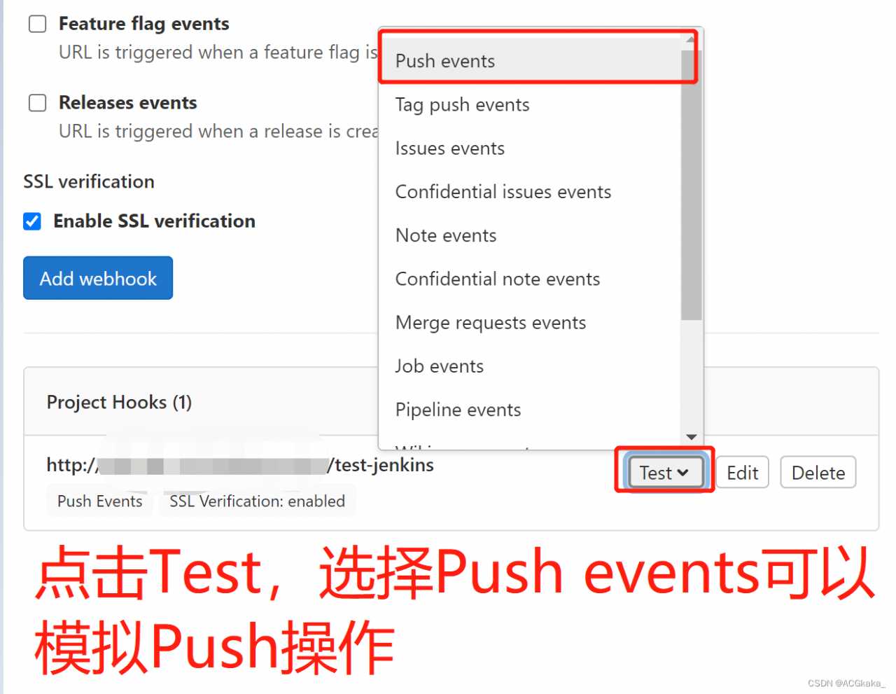 3.5)点击Test,选择Push events,可以模拟Push操作