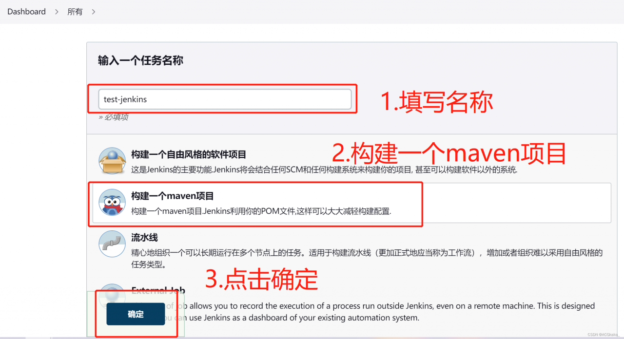 2.2)输入任务名称,选择构建一个maven项目,确定