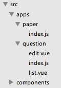 apps目录下放置各个子功能,如question和paper,下面是各自的子页面。components目录放置公共组件,这个后面再说。