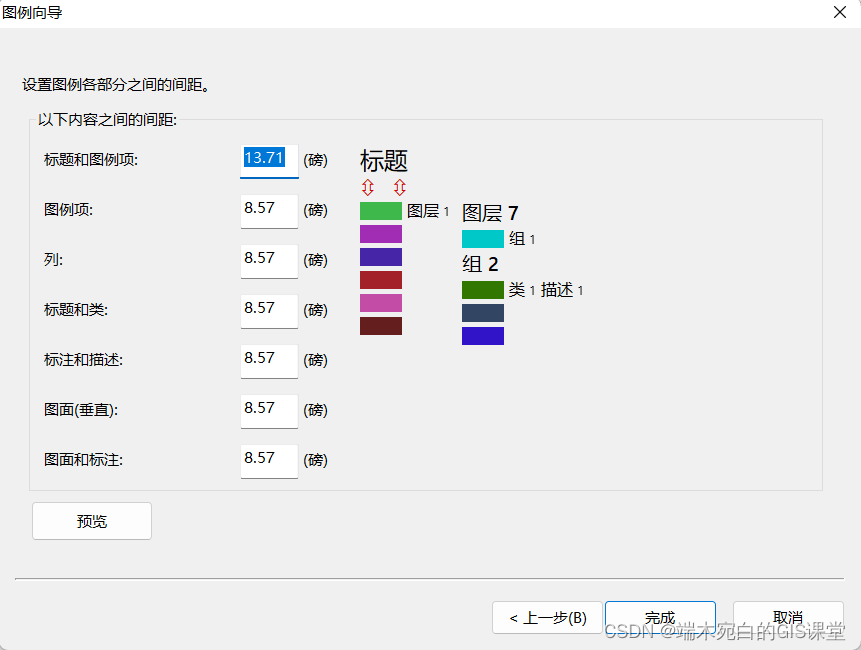 图例可以说作为整个制图中最为重要的一个部分,比例尺、指北针这些也重要,但是一幅图在没有指北针等的情况还是可以辨识,但是如果没有图例,那么将无法识别这是代表什么内容,可以进行怎么样的分析。