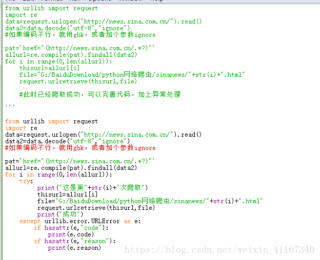 thisurl=allurl[i]file="G:/BaiduDownload/python网络爬虫/sinanews/"+str(i)+".html"