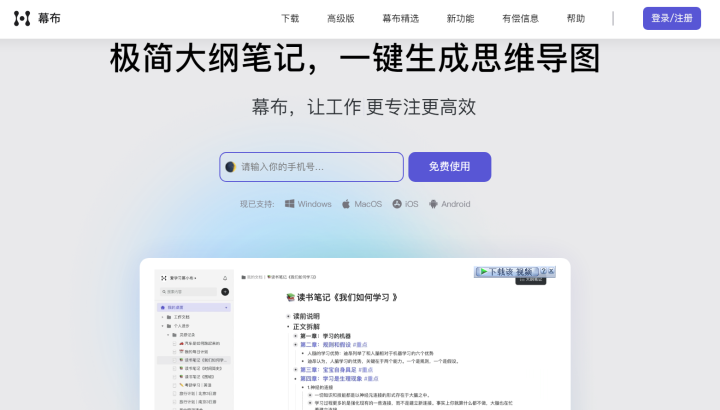幕布是一款包含大纲笔记和思维导图的知识管理工具,帮你用更有效的方式和更清晰的结构来记录和管理任务,还能制定计划和组织头脑风暴。幕布可以将思维以树形结构方式快速整理,记录过程简单,可以将思维真正落地。