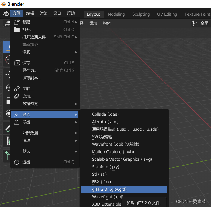 (1)通过blender可以导入glb模型、导出FBX。