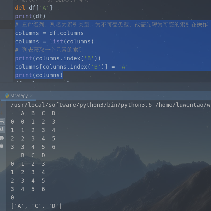 重命名列,需要操作列columns,由于列名为索引类型,不可变,故需转为可变对象进行操作: