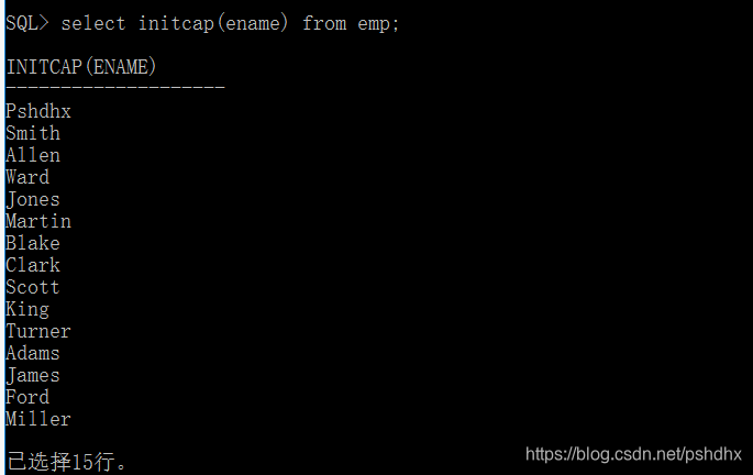 select initcap(ename) from emp; --设置字符串首字母大写,其余字母小写 |