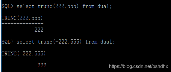 select round(-15.5),round(-17.2) from dual; --负数的取整先四舍五入再加负号 |